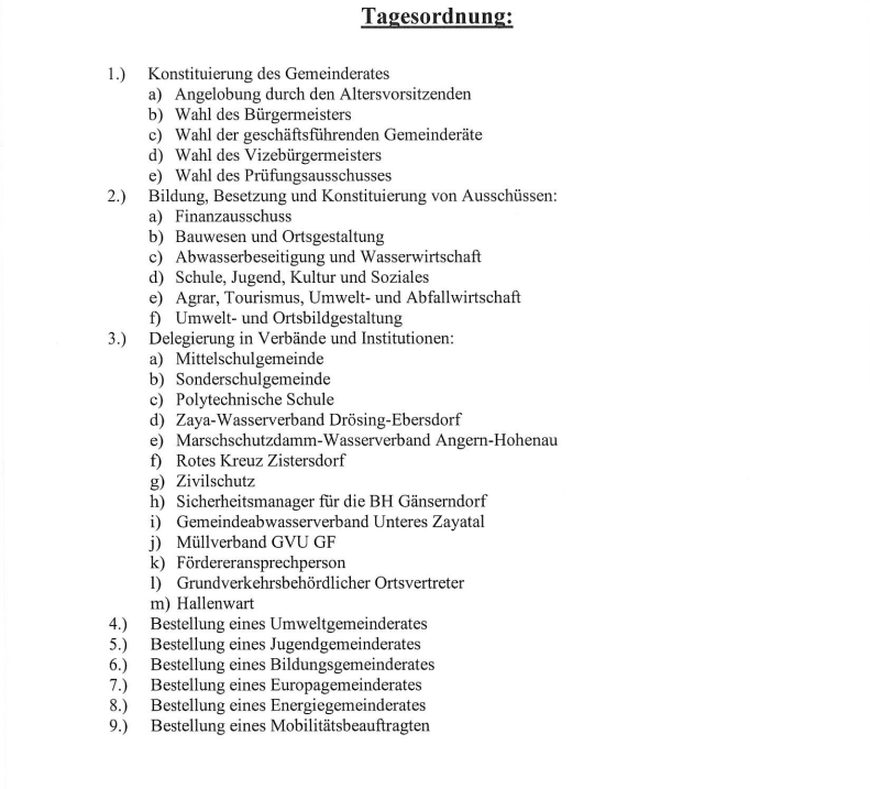 Konstituierung Gemeinderat 27. Februar 2025 Donnerstag, 27. Februar 2025 um 18. Uhr Gemeindeamt Ringelsdorf Lukas Bock2025-02-19T18:50:26+01:0019. Februar 2025| Teile diesen Beitrag in den sozialen Medien! FacebookXPinterestE-Mail